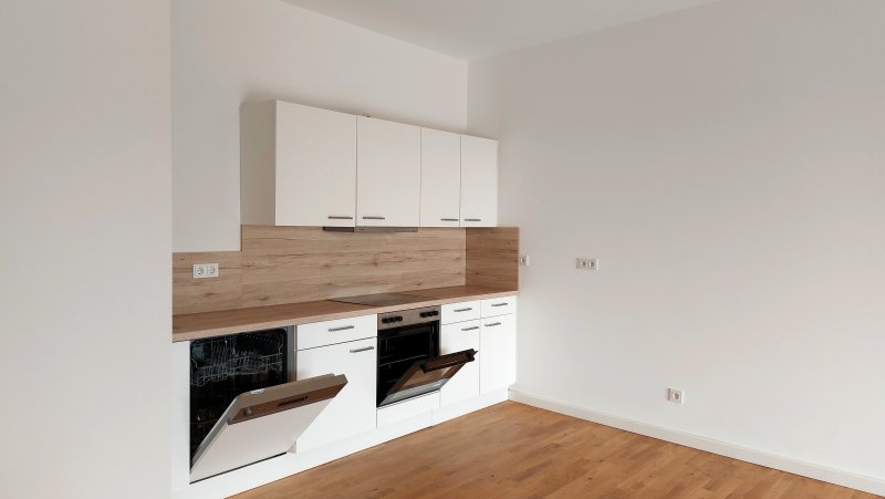 - moderne Einbauküche (Kühlschrank, Induktionsherd + Ofen, Geschirrspülmaschine)