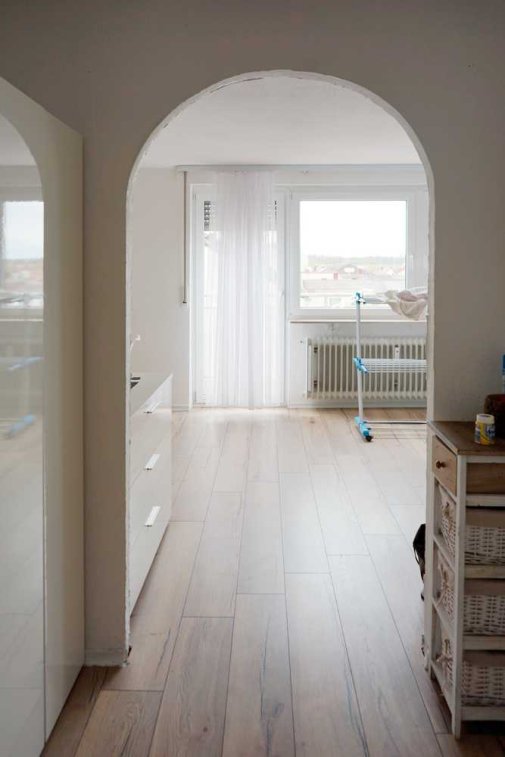 Sobald Sie die Wohnung betreten befinden Sie sich im Eingangsbereich. Von hier erreichen Sie alle Räume der Wohnung: das vollausgestattete Tageslichtbad mit Badewanne, das Schlafzimmer und der großzügige Wohnbereich inkl. Essbereich und halb offener Küche. Vom Wohnbereich aus gelangt man zudem auf den Balkon und in einen praktischen Abstellraum.