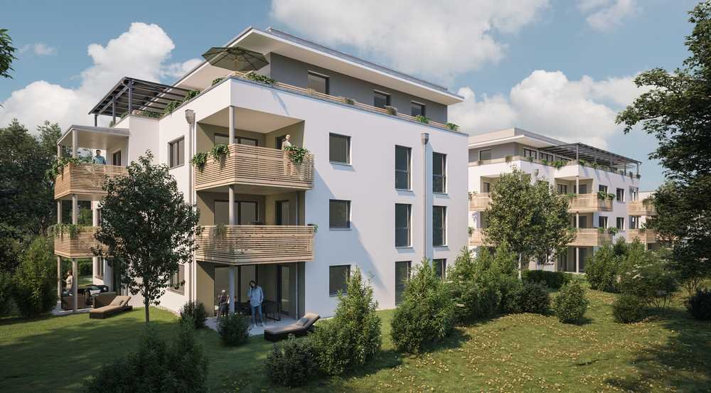 In diesem ruhigen Wohngebiet mit bester Anbindung an die Verkehrswege entstehen 5 Mehrfamilienhäuser mit insgesamt 58 Wohnungen und 71 Tiefgaragenstellplätzen.