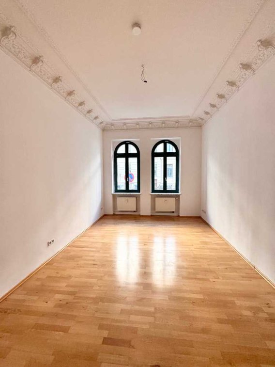 Die Wohnung befindet sich im Hochparterre eines sanierten Kulturdenkmals im Leipziger Zentrum-Nord. Sie verfügt über zwei separat begehbare Zimmer, ein Bad mit Dusche sowie einen Flur mit Fenster, in dem die Küchenzeile integriert werden kann.