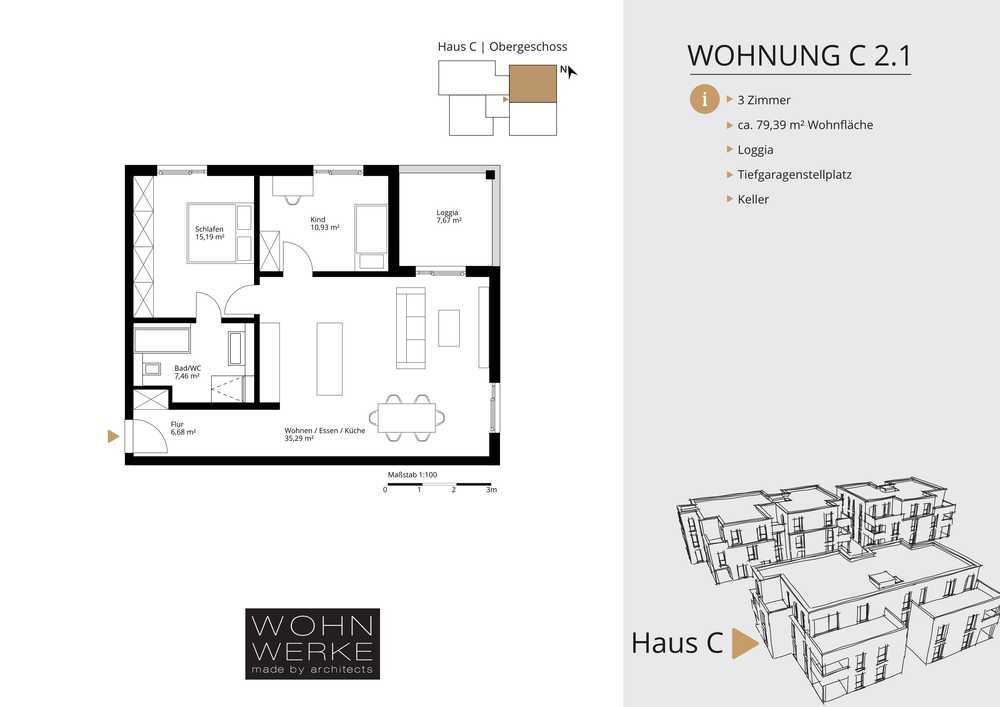 Whg C 2.1. - 3 Zimmer - Obergeschoss mit Ost-Loggia