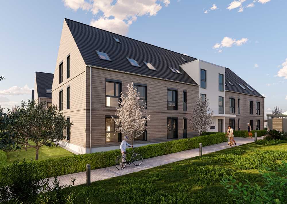 Das Neubauprojekt der Joseph Stiftung in der St.-Franziskus-Straße 2 in Eggolsheim umfasst insgesamt 9 hochwertige Eigentumswohnungen. Die Wohnanlage besticht durch ihre innovative Holzhybrid-Bauweise, die ein gesundes Raumklima und Nachhaltigkeit gewährleistet. Alle Wohnungen sind barrierefrei gestaltet und verfügen über moderne Ausstattung wie Fußbodenheizung, hochwertige Badezimmer und Parkettböden. Die Wohnungsgrößen variieren von 2 bis 4 Zimmern mit Wohnflächen zwischen ca. 51 und 107 m². Jede Wohnung verfügt über einen Balkon oder eine Terrasse, teilweise mit Garten.