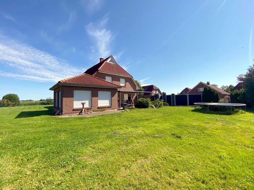 Dieses idyllisch gelegene Haus wurde 2001 im Friesenstil auf einem ca. 1.600 m² großen Grundstück in Berdum, einem ländlichen Ortsteil der Stadt Wittmund erbaut. Die durchdachte Aufteilung ermöglicht eine Nutzung als Zweifamilienhaus. Insgesamt ca. 242 m² Wohnfläche verteilen sich auf zwei Etagen. Im Erdgeschoss befinden sich das ca. 37 m² große Wohn-Esszimmer mit Kachelofen, die voll ausgestattete Küche mit Kochinsel, ein lichtdurchfluteter Anbau mit Zugang auf die überdachte Terrasse, ein Schlafzimmer, ein Vollbad, ein Gäste-WC und ein Hauswirtschaftsraum. Die Küche ist mit neuen E-Geräten ausgestattet. Ein Highlight im Erdgeschoss ist der offene Schnitt des Wohn-/Esszimmers mit den Durchgängen in die Küche und den Anbau. Im Obergeschoss gibt es insgesamt vier Zimmer, welche nach Belieben genutzt werden können sowie ein Duschbad. Der gedämmte und ausgebaute Spitzboden mit ca. 31 m² Fläche ist über eine Wendeltreppe erreichbar und kann als weiteres Zimmer oder als Abstellfläche genutzt werden. Die Gas-Brennwerttherme wurde 2022 erneuert. Alle Fenster sind mit Außenrollläden versehen. Die vorhandene Dämmung und die neue Heizung bewirken eine gute Energieeffizienz. Im Garten und aus zahlreichen Fenstern des Hauses können Sie den weitläufigen Blick über Felder und Wiesen genießen. Die Kläranlage mit 3-Kammer-System wurde in den letzten Jahren rundum erneuert und hat eine Genehmigung für weitere 15 Jahre erhalten. Eine Dichtungsprüfung ist ebenfalls kürzlich erfolgt. Die große Auffahrt und die Doppelgarage bieten ausreichend Platz für Ihre Fahrzeuge. Überzeugen Sie sich gerne bei einer Besichtigung von dieser attraktiven Immobilie.