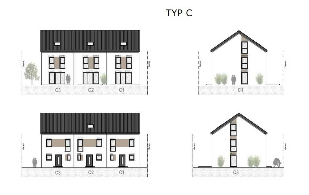 Der Haustyp C1 bietet eine Wohn-/Nutzfläche von ca. 128 m² und einer Grundstücksgröße von ca. 211 m².