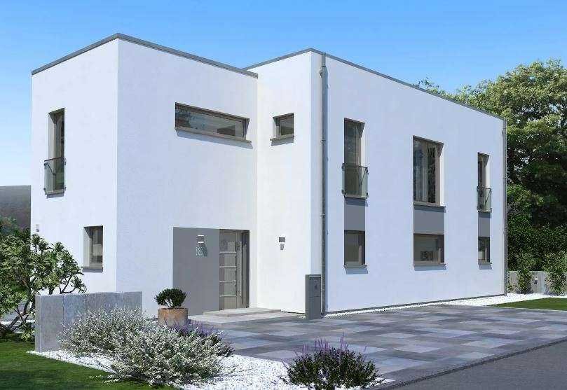 Der rechteckige und versetzte Flachdachbau steht für Wohnen der besonderen Art. Rund 152 m² bieten perfekt durchdachten Wohnraum für Singles, Paare und Familien mit einem Kind.