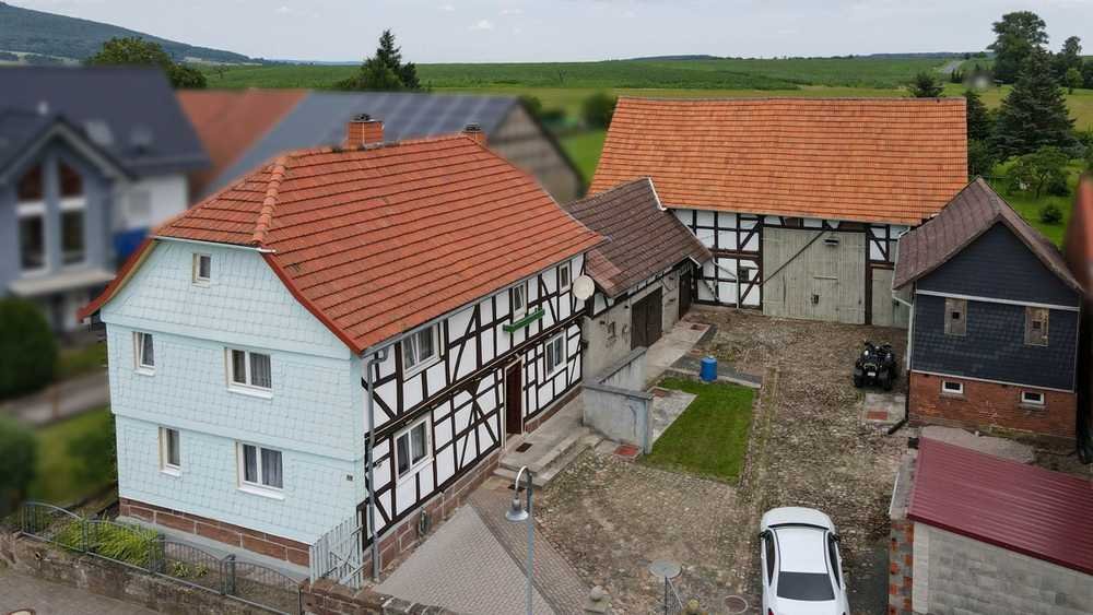Die hier angebotene Hofanlage umfasst ein Einfamilienhaus, Nebengebäude und Wiesen auf einem rund 2.117 m² großen Grundstück in Oechsen, einer Gemeinde im Wartburgkreis der thüringischen Rhön.