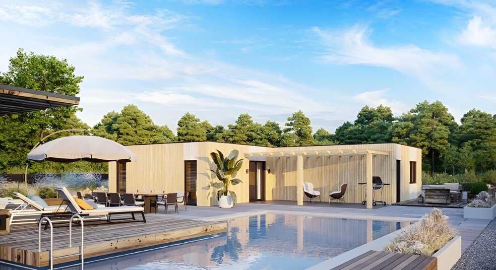 Umweltfreundliches Wohnen: In Treue zu unserem Engagement für nachhaltiges Bauen wird dieses Modulhaus unter Verwendung umweltfreundlicher