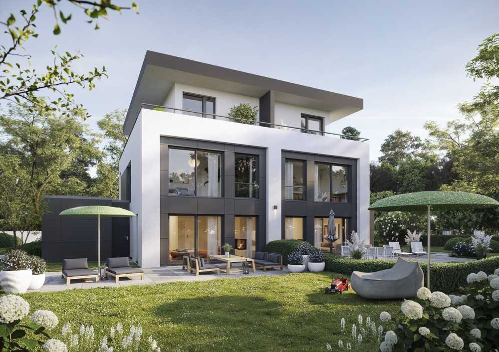 Beim Haus handelt es sich um einen Bebauungsvorschlag. Der Preis beinhaltet das abgebildete Haus inklusive Grundstück und Keller ohne Baunebenkosten. Grundrissänderungen oder individuelle Planung ist jeder Zeit möglich.