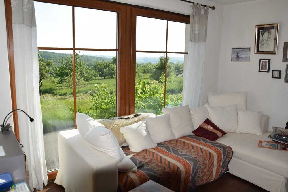Das Haus Bj. 1952, 2014: komplett kernsaniert, mittig alter Bestand, Türme neu in Holzständebauweise. Ausschließlich biologische Baustoffe, Dach mit Hanfdämmung, alle Außenwände mit Weichholzfaserplatten 10cm, 3- fach verglaste Fenster, Elektrik, Sanitär, 150qm Eiche-Parkett der Fa. Adler mit Fußbodenheizung, großer begehbarer Kleiderschrank vom Schreiner eingebaut, im ganzen Haus LED und Lehmputz, die Außenwände doppelt verputzt (gesundes Klima im Sommer und Winter, diffusionsoffen), Solarthermie für Brauchwasser und Heizungsunterstützung, (keine Kosten für Heißwasser von April bis Oktober, PV-Anlage 6,48 KWp (gepachtet) + Speicher, 21 KW Stückholzofen von Brunner im WoZi wasserführend, von digitaler Touchscreensteuerung im Wozi gesteuert, 1000 Liter Wasserspeicher. Das bedeutet für Sie sehr geringe NK, die zukünftig steigenden Kosten (CO2-Bepreisung) für Öl oder Gas wird Sie nicht betreffen, weiterhin gibt es eine dezentrale Belüftungsanlage mit Wärmerückgewinnung, Zentralstaubsauger ist ebenso vorhanden.