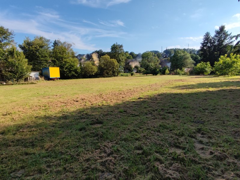 Der geräumige Hof grenzt an der Agger und umfasst 10 Grundstücke mit Gesamtfläche von ca. 7893 q.m. aber die sind leider keine Baugrundstücke. Das flache und sonnige Grundstück eignet sich Ideal für Tierliebhaber, Gartenfreunde und Selbstversoger. Da wurden erfolgreich Pferde, Hühner und Kanninchen, sowie Obst- und Gemüse gezüchtet. Mehrere Bäume und Sträucher sind gepflanzt. Der Pferdestall ist aus Holz und zum Abriss oder Kernsanierung. Der Zirkuswagen dahinten ist dicht, bewohnbar, ca. 15 m² mit Bad und WC, 2000 Ltr. Abwassercontainer, eignet sich gut als Atelier, Spielraum, Gästehaus, zum Mieten.