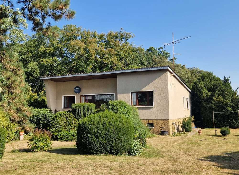 Wir bieten im qualifizierten Alleinauftrag ein freistehendes Einfamilienhaus an. Dabei handelt es sich um einen vollunterkellerten Bungalow, in unmittelbarer Nähe zum Bahnhof Paulinenaue. Über eine großzügige Treppe erreichen Sie den Hauseingang. Der Wohnbereich im Erdgeschoss gliedert sich in Flur mit einem Gäste-WC. Anschließend liegt der zentral gelegene offene Essbereich mit Panoramafenster. Von hieraus erreichen Sie Küche, Kinderzimmer, Wohnzimmer sowie Kellerzugang und den Flur zum Hauptbad, Elternschlafzimmer und einem weiteren Kinderzimmer. Dieser Flur zeichnet sich durch einen äußerst geräumigen Wandschrank aus. Das Hauptbad ist mit einer bodentiefen Dusche ausgeführt und wurde kürzlich erneuert. Das Wohnzimmer besticht durch einen unverbauten weiten Blick über den Garten auf Wiesen und Felder. Neben einem Panoramafenster befindet sich der Zugang zur Terrasse. Von dort aus gelangen Sie in den Garten. Durch eine zweigeteilte Schiebetür gelangen Sie vom Wohnzimmer in die „Gute Stube“. Dieser Raum könnte zu einem dritten Kinderzimmer oder beispielsweise zu einem Kaminzimmer umgebaut werden. Der Keller ist vom Wohnbereich über eine Treppe zu erreichen, zusätzlich gibt es einen direkten Zugang zum Garten und eine Tiefgarage. Des Weiteren befinden sich fünf Räume im Untergeschoss. Dort ist auch die Ölheizung nebst Tanklager untergebracht.