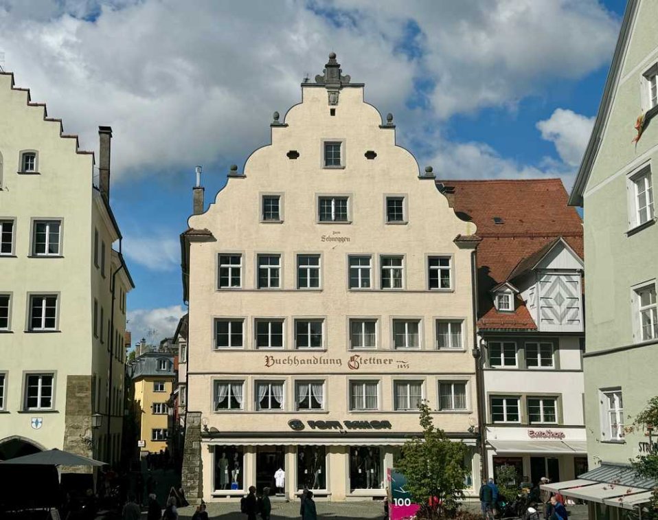 Dieses ehemalige Bürgerhaus, ursprünglich aus drei Häusern im 15./16. Jahrhundert erbaut, prägt seit dieser Zeit massgeblich das Bild der Maximilianstrasse, Lindaus pittoresker Fussgängerzone. In prominenter Lage direkt gegenüber des Rathauses zählt es sicher zu einem der imposantesten Häusern auf der Lindauer Insel. Bestehend aus vier Etagen, darüber ein Dachboden und Spitzboden, sowie einem Keller hat das Haus eine Gesamtfläche von 800 ca. qm Wohn - und Gewerbefläche.