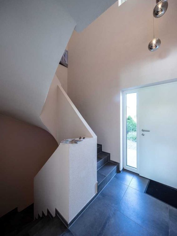 Es besteht aus 2, über ein außerhalb der Wohnungen liegenden, Treppenhaus zugänglichen 3 Zimmer Wohnungen mit jeweils einem großzügigen Wohnraum mit integrierter Küche und Essplatz, einem Schlafzimmer und einem Kinder- oder Gästezimmer, sowie einem luxoriösem Bad mit großer bodengleicher Dusche und einer Boden versenkten (EG) bzw. freistehenden Badewanne (OG). Beim Baden den Blick ins Grüne genießen, einfach ein Gefühl der Ruhe und Entspannung erleben und die Zeit vergessen.