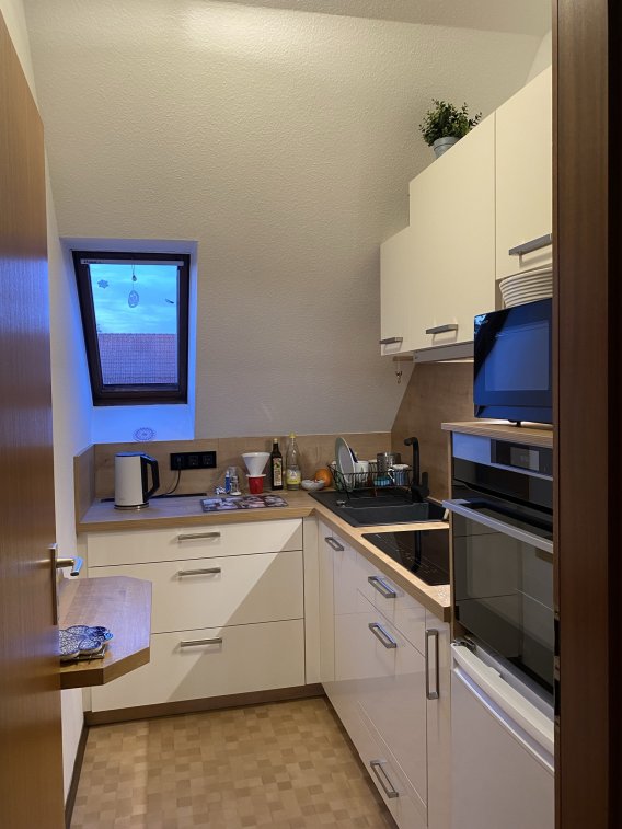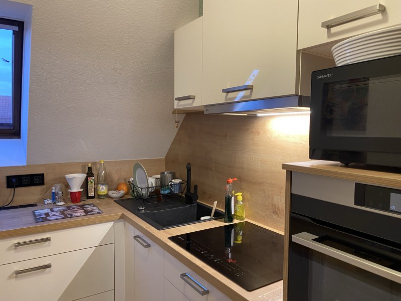 Eine neue weiße Nolte-Küche wurde 9/23 eingebaut inkl. Bauknecht-Induktionskochfeld, Siemens-Backofen, Spülmaschine, Dunstabzug.