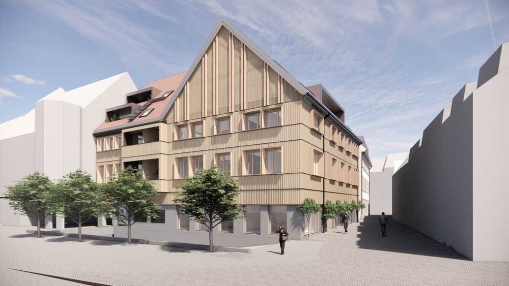 Im ehemaligen Volksbankgebäude am Markplatz in Waldkirch, entstehen 28 Wohneinheiten in einer moderierten Bauherrengemeinschaft.