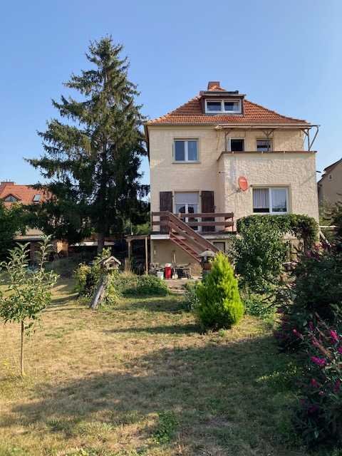 Es handelt sich hier um ein 1955 voll unterkellertes, massives Wohnhaus. Das Haus bietet mehrere Möglichkeiten. Hier kann eine Familie großzügig auf ca. 160 m² wohnen, aber auch zwei Wohneineinheiten sind möglich. Auch Wohnen und Arbeiten unter einem Dach lässt sich hier problemlos umsetzen. Das Grundstück ist 1.050 m² groß, erschlossen und eingefriedet. Es verfügt über eine Zufahrt, 3 Garagen, einen Garten. Eine weitere Zufahrt zu schaffen wäre möglich.