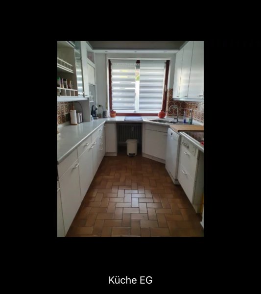 EG: Wohnzimmer mit Kamin und Balkonzugang, Küche mit Einbauküche, zwei Kinderzimmer, Schlafzimmer, Badezimmer mit Badewanne, Dusche und Doppelwaschbecken, separate Toilette (vor ca. 6 Jahren renoviert).