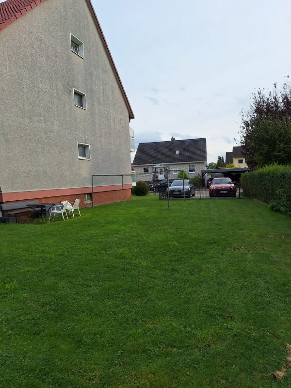 Bei dieser Immobilie handelt es sich um eine 4-Zimmer Wohnung in einem 6-Familienhaus., die im 1. OG liegt. Die Wohnung verfügt über einen Balkon, eine Garage und EBK. Die Fenster sind dreifach verglast, haben eingebaute Insektenschutzgitter, elektrische Außenjalousien und sind abschließbar. Das Badezimmer verfügt über eine Dusche. Zu der Wohnung zählt anteilig ein Dachboden, ein Fahrradkeller, eine Waschküche, ein Trockenraum und ein Keller. Zum Grundstück gehört ein gepflegter Garten, der von Groß und Klein genutzt werden kann. Die Treppenhausreinigung und die Gartenarbeiten wird von Dienstleistungsunternehmen durchgeführt und das Hausgeld beläuft sich auf ca. 414,--€ im Monat. Ein Energieausweis ist vorhanden.