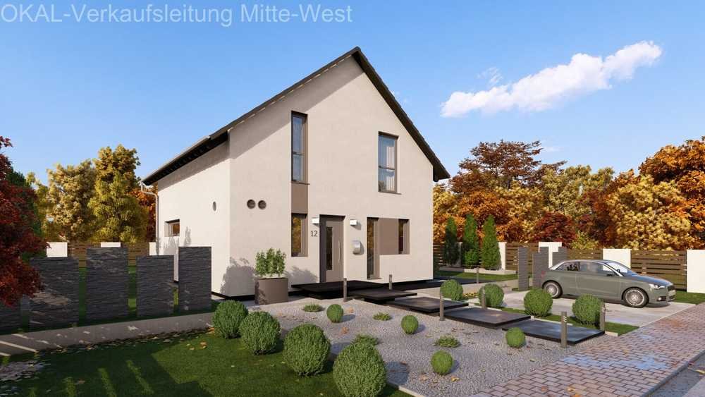 Zeitlose Eleganz außen, Weite und ein besonderes Raumgefühl innen - das ist unser Otto`s Beste .. Unter dem Satteldach warten hier rund 135 m² auf zwei Ebenen darauf, bezogen und mit Leben gefüllt zu werden. Im Erdgeschoss ist Offenheit Trumpf: Hier erstreckt sich der große Wohn-Ess-Koch-Bereich nahezu über die gesamte Ebene, wird nur durch die zentral platzierte Treppe von der Diele abgetrennt. Das Ergebnis: ein lichtdurchfluteter, einladender und großzügiger Bereich zum Wohlfühlen und Treffen. Im Eingangsbereich stehen zudem ein kleines Gäste-WC sowie ein großer Hauswirtschaftsraum zur Verfügung. Über die mittig gelegene Treppe geht es ins Obergeschoss. Hier ist ausreichend Raum für Eltern und bis zu zwei Kinder. Die Eltern verfügen über ein großzügig geschnittenes Reich mit separatem Ankleideraum, zwei große Kinderzimmer lassen ebenfalls keine Wünsche offen. Abgerundet wird das Raumangebot in der oberen Etage durch ein großes Badezimmer mit Dusche, Wanne und WC.