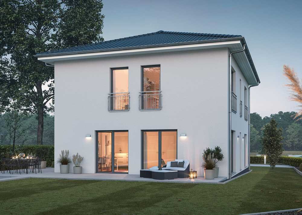 Bodentiefe Verglasungen lassen viel Licht in die Stadtvilla LifeStyle 18.07 W und machen das selbstbestimmte Wohnen auf den großflächigen Wohnebenen noch schöner. Weitere Schmuckstücke des Hauses sind der offene, über Eck angelegte Wohn-, Ess- und Küchenbereich oder der gerade Treppenaufgang, der raumsparend zu den großzügigen Zimmern im Dachgeschoss hinaufführt. Die schlichte und dennoch ausdrucksstarke Außenansicht sowie ein Walmdach prägen den wesentlichen Stil des Hauses.