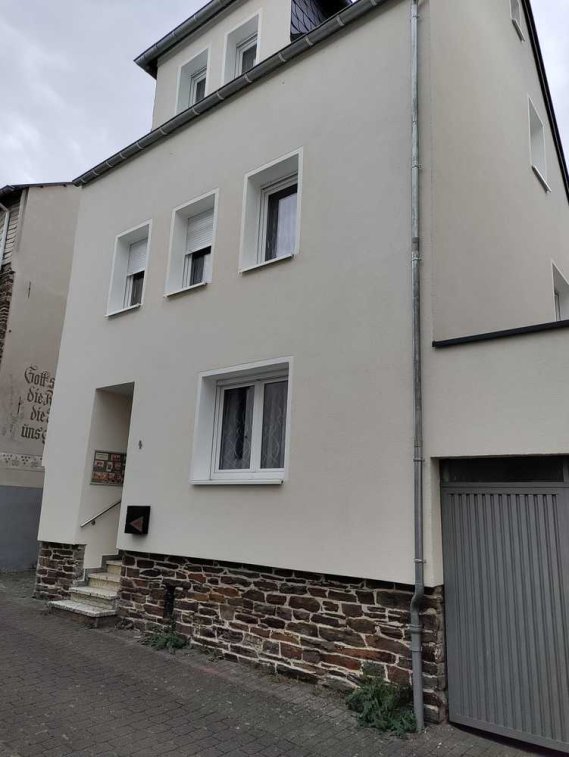 Das Objekt wurde ca. 1960 in Massiver Bauweise auf einem ca. 135 m² Grundstück dreigeschossig im Ortsteil Ellenz in Moselnähe erstellt. Die Wohnfläche von ca. 145 m² verteilt sich auf 3 abgeschlossene Wohnungen und einen Hauswirtschaftsraum. Das Gebäude ist teilunterkellert- ehemaliger Bruchsteinkeller (Winzerkeller). Jede Wohnung hat einte eigenes Bad, Küche und Wohn/Schlafraum und natürlich eine eigene Wohnungsabschlusstür. Das Haus wurde während mehrere Jahre komplett saniert. Sämtliche Versorgungsleitungen (Strom, Wasser, Abwasser, Heizung) wurden erneuert. Alle Fenster wurden durch neue isolierverglaste Kunststofffenster mit Rollläden ersetzt. Außendämmung und eine entsprechende wärmeisolierte Haustür wurden eingebaut. Neue Bodenbeläge, im ganzen Haus LED- Beleuchtung und teils abgehangene Trockenbau-decken wurden eingebaut. Das Haus verfügt über eine zum Hof offene Garage und eine neue Aluminium-Terrassenüberdachung auf dem Hof.