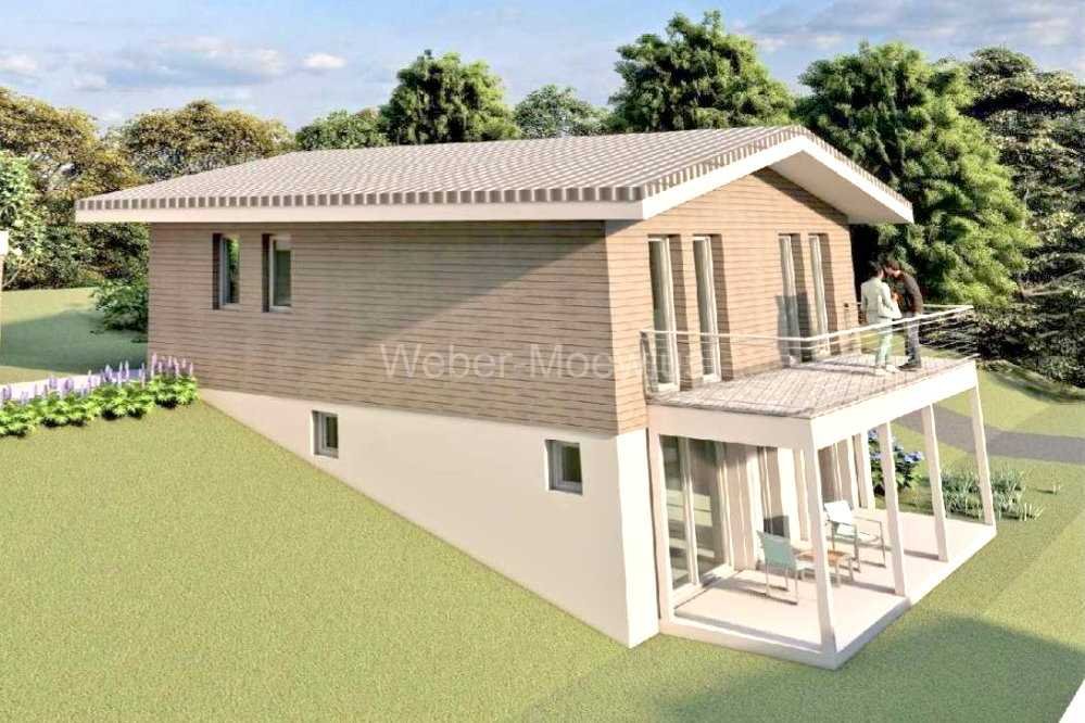 Das hier angebotene Massivholz-Einfamilienhaus (in waagerechter Elementar-Wand ab Oberkante Kellerdecke) wird auf einem 610 m² großen Grundstück in traumhafter und ruhiger Wohnlage errichtet. Es handelt sich um ein KfW40 Haus. Das zweite in der Ansicht abgebildete Haus steht ebenfalls zum Verkauf.