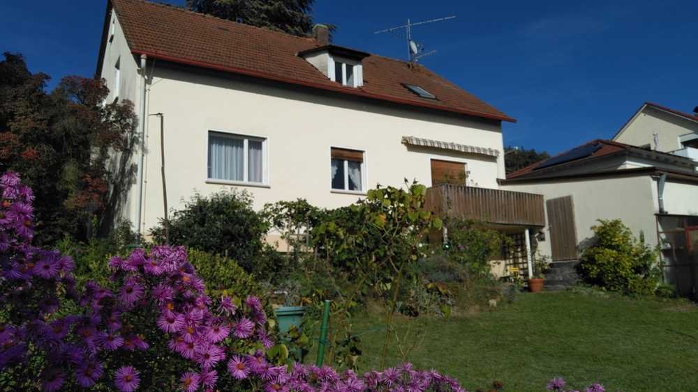 Das sanierungsbedürftige Zweifamilienhaus aus dem Jahr 1959 (massive Ziegelbauweise) mit Kellergeschoss steht auf einem großzügigen 1.227 m² großen Gartengrundstück in Südhanglage und herrlichem Weitblick.