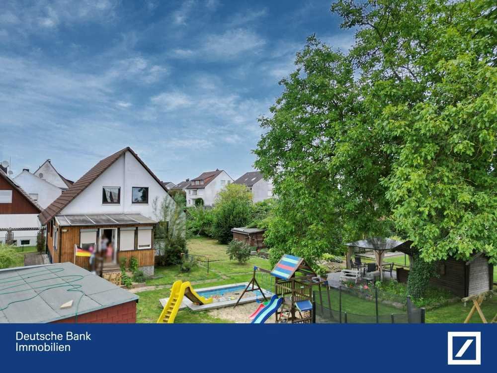 Dieses Einfamilienhaus (voll unterkellert) wurde 1968 auf dem 1219 m² großen Erbbaugrundstück errichtet und verfügt über eine Wohnfläche von ca. 142,17 m². Im Erdgeschoss befinden sich ein großzügiger Wohnbereich mit Esszimmer, ein Flur, ein Schlafzimmer, eine Küche sowie ein Tageslichtbad mit einer Dusche. Das Dachgeschoss ist aufgeteilt in drei Schlafzimmer und ein Tageslichtbad mit Badewanne. Der Keller dient als Abstellfläche und ist zum Teil beheizt. Ein großer Garten, eine Garage und ein Wintergarten runden das Angebot ab.