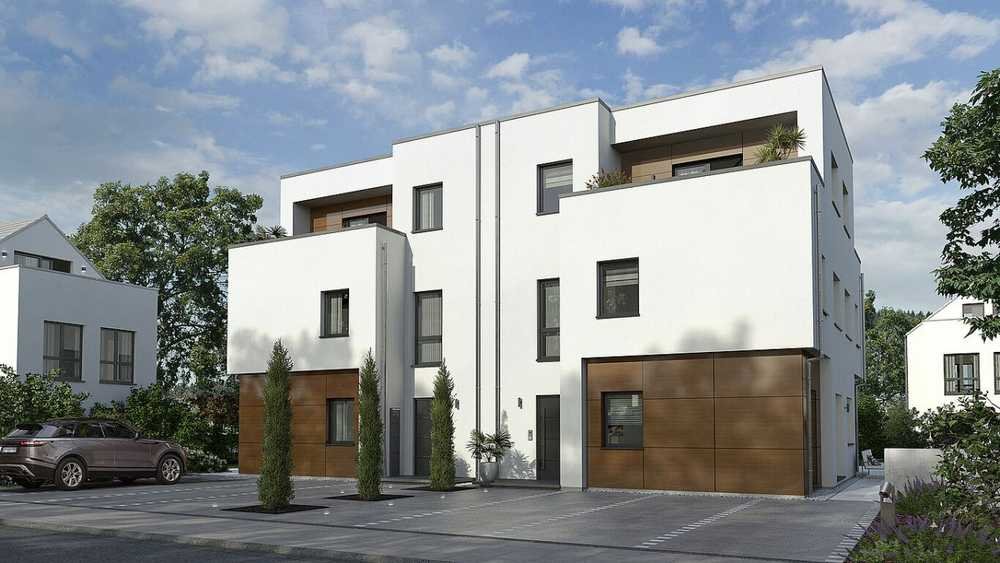 Vier Wohneinheiten, die nichts an Komfort und architektonischen Highlights vermissen lassen - das ist unser Zinshaus 7. Das dreigeschossige Gebäude mit modernem Flachdach bietet viele Optionen: Komplettvermietung für eine maximale Rendite oder Teilvermietung mit der Möglichkeit, eine der Wohneinheiten selbst zu beziehen. Jeweils zwei Wohnungen des Doppelhauses sind baugleich. Die beiden Einliegerwohnungen parterre sind über einen gemeinsam genutzten Flur mit separatem HWR erreichbar und vereinen alles, was Singles oder Paare zum komfortablen Wohnen benötigen: ein großes und lichtdurchflutetes Wohn-Ess-Zimmer, separate Küche, Schlafzimmer sowie Bad. Einen loftähnlichen Charakter weisen die beiden darüberliegenden Wohnungen auf, die sich jeweils über zwei Etagen erstrecken. Den Mittelpunkt des ersten Stockwerks bildet der geräumige Essbereich, an den sich die Küche direkt anschließt. Außerdem in dieser Etage: ein großes Kinderzimmer, Badezimmer sowie ein über den gemeinsam genutzten Flur zugänglicher HWR. Unterm Dach: ein großes Wohnzimmer mit Zugang zu zwei großen Balkonen sowie das Reich der Eltern - mit Schlafbereich, Ankleide- und Badezimmer.