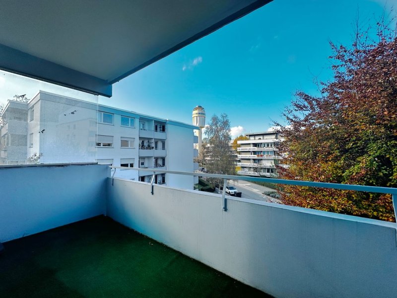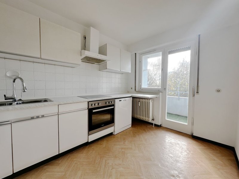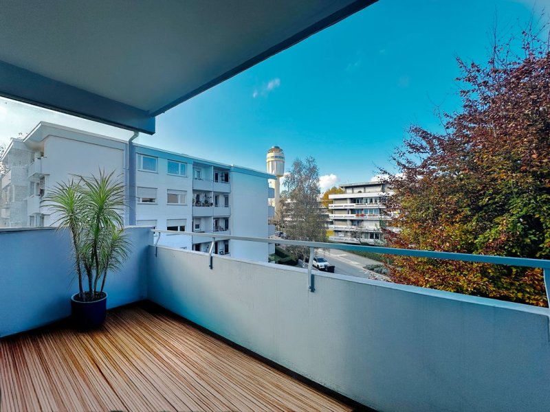 Der Eingangsbereich ist mit einer modernen Video-Gegensprechanlage ausgestattet. Ein Kinder- oder Arbeitszimmer, ein großzügiges Schlafzimmer sowie ein Gäste-WC und ein hell gefliestes Bad mit Wanne bieten viel Komfort. Das Herzstück ist der offene Wohn- und Essbereich mit Zugang zu einem Balkon samt Markise. Eine separate Küche mit Zugang zum zweiten Balkon rundet das Angebot ab.