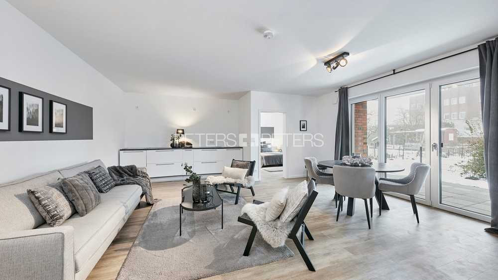 Sie betreten die Wohnung über eine sehr geräumige Diele, mit Zugang zum Abstellraum und dem Gäste-WC. Weiter geht in das Wohnzimmer, mit offenem Küchenbereich. Da es sich hier um einen Neubau im Erstbezug handelt, wird die Wohnung ohne Küche übergeben, sodass Sie Ihren Geschmack voll ausleben können.