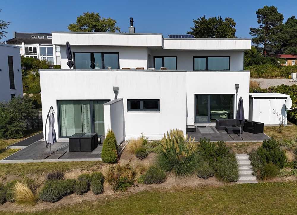 Dieses luxuriöse Wohnhaus im beliebten Ostseebad Binz auf der Insel Rügen bietet ein unvergleichliches Wohngefühl und vereint modernen Komfort mit einer herausragenden Lage. Das Anwesen erstreckt sich über ein ca. 598 m² großes, gepflegtes Grundstück und besteht aus zwei separaten Wohneinheiten mit einer Gesamtwohnfläche von ca. 220 m². Die erste Wohneinheit, mit großzügigen 145 m² Wohnfläche erstreckt sich über zwei Etagen und hat zwei geräumige Schlafzimmer, zwei stilvolle Bäder sowie eine Sauna. Der elegante, lichtdurchflutete Wohnbereich führt auf eine weitläufige Dachterrasse, die einen atemberaubenden Blick über die Dächer von Binz bietet. Eine moderne Küche vervollständigt den luxuriösen Wohnkomfort. Der Wohn- und Schlafbereich ist mit hochwertigem Mobiliar ausgestattet, darunter auch stilvolle USM-Haller Schränke, die perfekt in die zeitlose und elegante Innenraumgestaltung integriert sind. Die zweite Wohneinheit umfasst ca. 75 m² und ist ebenfalls hochwertig ausgestattet. Sie bietet einen offenen Wohn- und Essbereich mit Küche, ein Schlafzimmer, ein Badezimmer und einen praktischen Abstellraum. Hier wurde auch auf eine funktionale und moderne Ausstattung geachtet. Beide Einheiten profitieren von moderner Technik, darunter eine Be- und Entlüftungsanlage, die für ein angenehmes Raumklima sorgt. Eine umweltfreundliche Solarthermie-Anlage liefert effizient Warmwasser. Das gesamte Haus ist mit einem eleganten, zeitlosen Fliesenboden ausgestattet, der die hochwertige Ausstattung und das Mobiliar ideal ergänzt. Der Außenbereich bietet zwei private Parkplätze und ein hochwertiges Metall-Gerätehaus. Das liebevoll angelegte Grundstück lädt zum Entspannen ein, während die exzellente Lage – nur wenige Gehminuten vom feinsandigen Strand, der Seebrücke und der charmanten Promenade entfernt – das Anwesen besonders attraktiv macht. Dieses luxuriöse Wohnhaus vereint höchste Wohnqualität, stilvolles Design, exklusives Mobiliar und eine erstklassige Lage. Es eignet sich perfekt als privater Rückzugsort, Ferienhaus oder Kapitalanlage und erfüllt höchste Ansprüche an exklusives Wohnen an der Ostsee.
