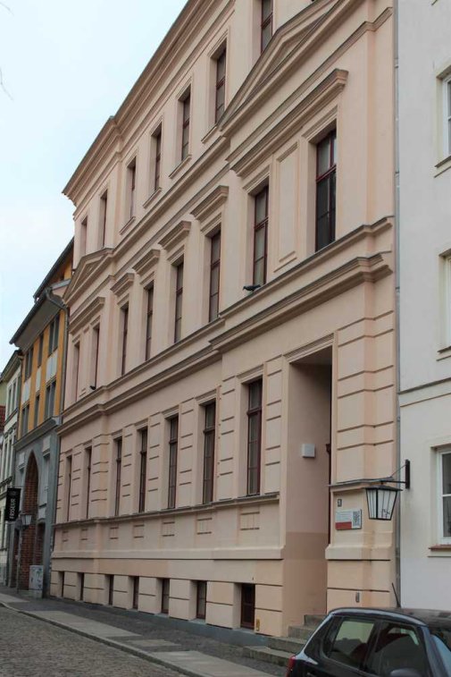 Der große, dreigeschossige Putzbau auf hohem Sockel wurde 1846/47 als Lagerhaus errichtet.