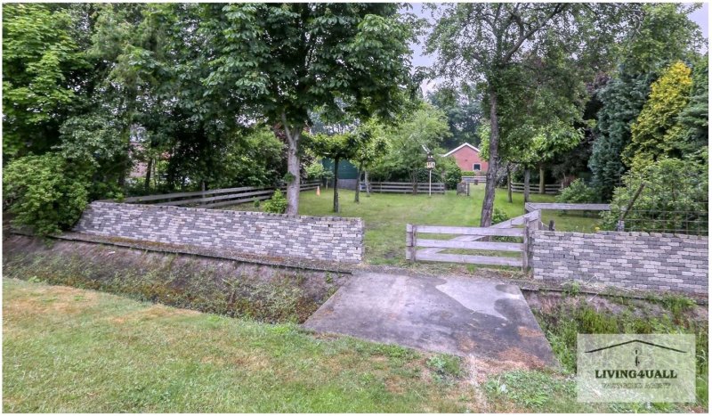Freistehendes, altersgerechtes Haus mit umgebauter Doppelgarage (87 m²), die über eine feste Treppe ins Obergeschoss führt; dadurch sind Mehrgenerationenwohnen, B&B und/oder ein Büro zu Hause ebenfalls möglich. Darüber hinaus verfügt das Haus über eine Überdachung, ein Gartenhaus und einen Pool von etwa 50 bis 55 m².