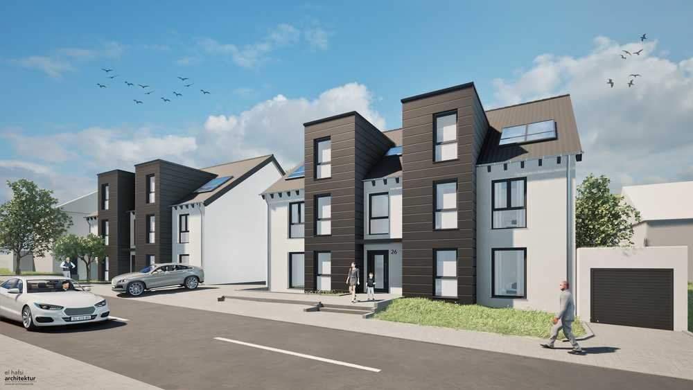 Das äußere Erscheinungsbild der Häuser besticht durch das Zusammenspiel unterschiedlicher Fassadenbauteile bestehend aus Zinkverkleidungen, farbigen Putzflächen, (gestalterische Vorgabe des Architekten) in Verbindung mit harmonisch unterteilten großflächigen Fensterelementen und farblich abgestimmtem Hausdach. Eine Immobilie mit einem komfortablen Preis-Leistungsverhältnis entsprechend der EnEV 2016 und dem GEG ab Nov. 2020, Novell. 2023/2024 und den Anforderungen an energieeffizientes Bauen Standard 55.