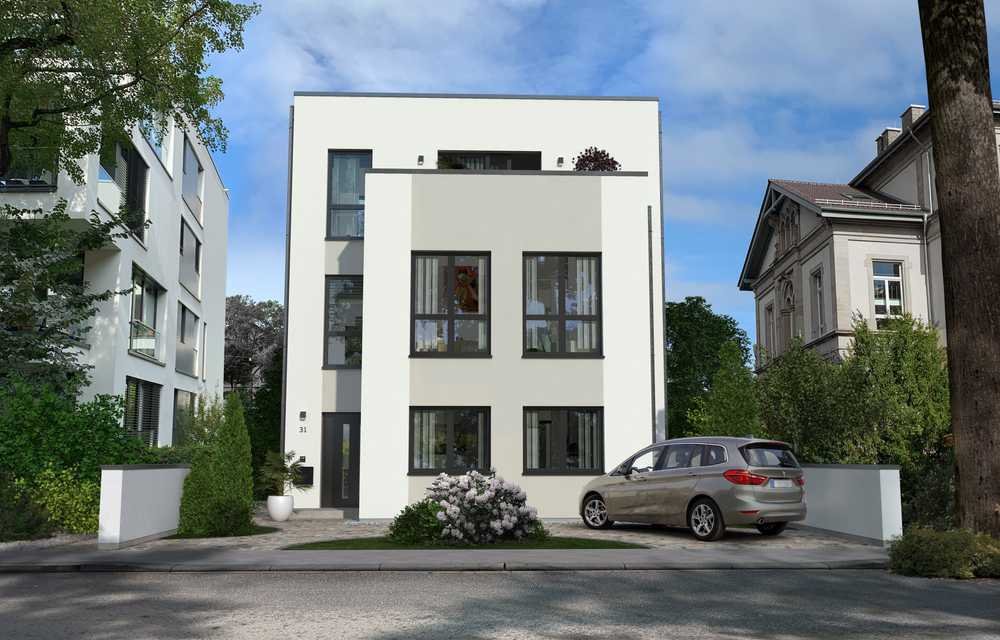 Town House 13.2 ist identisch mit 13.1, unterscheidet sich jedoch in der Grundrissplanung. Hier ist im Erdgeschoss eine 65 m2 große Einliegerwohnung vorgesehen, die mannigfaltige Nutzungsmöglichkeiten zulässt: Vermietung, Ferienwohnung, Home-Office oder eigener Wohnbereich für Familienangehörige. Die separaten Eingänge und das abgeschlossene Treppenhaus sorgen für eine klare Abtrennung.