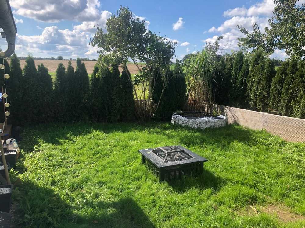 Der hintere Garten bietet freie Sicht und im Vorgarten ist ein gemütlicher Wintergarten mit Sitzecke angelegt.