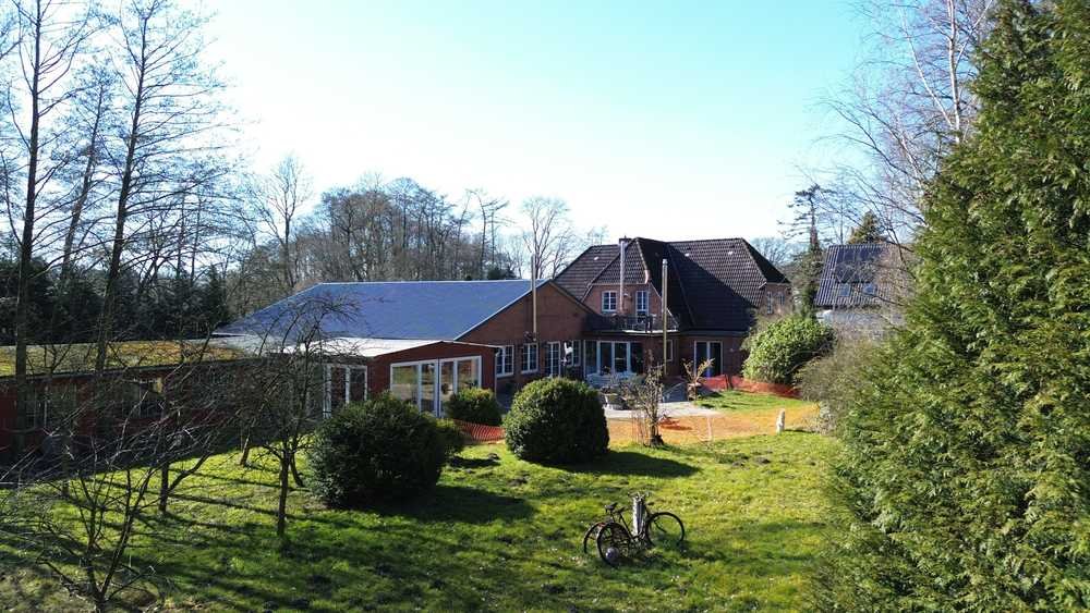 Diese besondere Immobilie vereint den Charme eines ehemaligen Landgasthofs mit dem Komfort eines modernen Wohnhauses. Sie wurde um 1935 neu aufgebaut und in den letzten vier Jahren mit viel Liebe zum Detail renoviert. Dabei wurden Dach, Mauerwerk und Leitungen größtenteils grundsaniert. Die gelungene Kombination aus alt und neu schafft eine unvergleichliche Wohnatmosphäre. Bewusst behaltene Relikte geben Einblicke in die frühere Nutzung: das wunderbar erhaltene, in Fischgrät verlegte Eichenholzparkett des Tanzsaals, die in einem Nebengebäude untergebrachte frühere Kegelbahn und die Sektbar, die heute wieder als Bar genutzt wird. Gleichzeitig lassen die geschaffenen Wohnräume nur wenige moderne Wohnwünsche offen. Die beiden neuen Bäder im Erdgeschoss stechen dabei besonders hervor. Auf rund 300 m² Wohnfläche gehen die Räume im Erdgeschoss fließend ineinander über. Lediglich das Schlafzimmer, die beiden Bäder sowie der für Hauswirtschaft und die Heizung genutzte Bereich dieser Ebene sind durch Türen vom übrigen Wohnbereich und der Küche getrennt. Die sonnige Terrasse lässt sich sowohl aus der Küche betreten als auch aus den beiden Wohnbereichen, die jeweils über einen eigenen Kaminofen verfügen. An den früheren Tanzsaal schließt sich ein eindrucksvoller Wintergarten an, der einen atemberaubenden Ausblick auf den imposanten Baumbestand und die parkähnliche Gartenanlage des ca. 4.708 m² großen Grundstücks anbietet. Eine unwillkürliche Einladung zum Innehalten, sich vollkommen unbeobachtet an der Natur zu erfreuen und die gefühlte Alleinlage zu genießen. Die Wohnung im Dachgeschoss erschließt sich sowohl aus dem Erdgeschoss als auch über einen separaten Außeneingang. Sie ist freundlich, großzügig und wurde ebenfalls liebevoll renoviert. Ihr Raumangebot umfasst zwei Zimmer, ein Wannenbad sowie einen großen Wohn- und Essbereich mit Kaminofen, Zugang zur Dachterrasse und Blick in den Garten. Am Fuß der Treppe ins Dachgeschoss befindet sich ein weiteres Duschbad, das ebenfalls von den Bewohnern des Dachgeschosses genutzt wird. Darüber hinaus verfügt dieses Objekt über sehr viel Nutzfläche, zu der insbesondere die schon erwähnte frühere Kegelbahn zählt und auch eine aktuell als Laden betriebene Gewerbefläche. Dieses außergewöhnliche Anwesen punktet mit seiner Lage, seiner Ausstattung und seinem großen Grundstück. Es bietet die seltene Kombination aus Abgeschiedenheit und guter Anbindung an eine funktionierende Infrastruktur und vereint traditionelles Bewusstsein mit individuellem Wohnstil. Entdecken Sie die Vielfalt der Nutzungsmöglichkeiten bei Ihrem Besichtigungstermin.