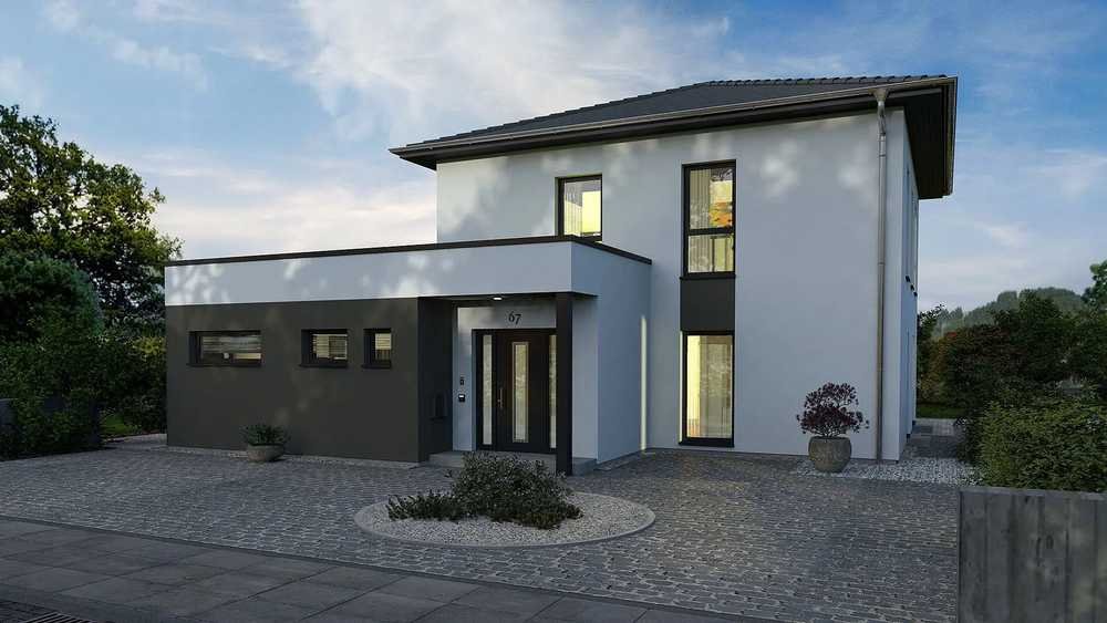 Vermietung, Rückzugsort für die erwachsen werdenden Kinder, Bleibe für die Großeltern oder Büroräume – die Möglichkeiten bei unserem Staffel 16 mit angegliederter Einliegerwohnung sind nahezu grenzenlos. Hier befindet sich im eingeschossigen Anbau, der dem Haus auch optisch eine besondere Note verleiht, eine knapp 47 m² große Wohnung mit einem geräumigen Wohn-Koch-Ess-Bereich, Schlafzimmer, Bad sowie Hauswirtschaftsraum. Hier ist ausreichend Platz für Singles oder Paare. Das Haupthaus bietet unter dem Walmdach genug Raum für eine Familie mit bis zu zwei Kindern. Wohnlicher Mittelpunkt ist der fast 50 m² große Wohn-Ess-Koch-Bereich, der dank zahlreicher Fensterfronten hell und einladend ist und einen direkten Zugang zur Terrasse ermöglicht. Ebenfalls im Erdgeschoss: Hauswirtschaftsraum und Gäste-WC. Vom Wohnbereich führt die Treppe ins Obergeschoss, wo das Reich der Eltern räumlich klar abgetrennt ist von den beiden Kinderzimmern. Die Eltern verfügen über ein großes Schlafzimmer, eine separate Ankleide und ein von ihrem Zimmer zugängliches Bad mit Wanne, Dusche und WC. Den Kindern steht hier ein weiteres Bad zur Verfügung.