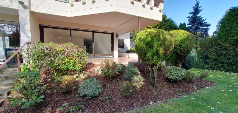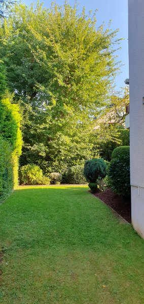 Besonders hervorzuheben sind die bodentiefen Fenster im Wohnzimmer, die wunderschöne Terrasse mit einem grünen Garten / Gartennutzung.