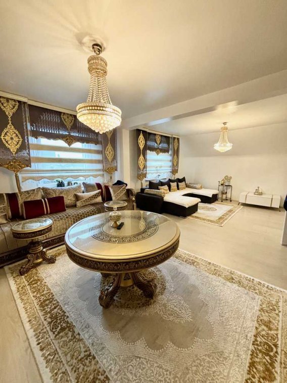 Die Räumlichkeiten der Wohnung sind großzügig geschnitten und bieten ausreichend Platz für eine Familie. Im Obergeschoss befinden sich die Schlafzimmer und eines der Badezimmer, während sich im Erdgeschoss das gemütliche und große Wohnzimmer, die Küche, ein weiteres Badezimmer und ein weiteres Zimmer befinden. Große Fenster sorgen für viel Tageslicht und verleihen der Wohnung eine angenehme Atmosphäre.