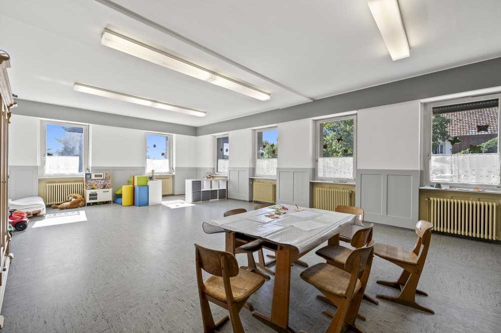 Im geräumigen Untergeschoss befinden sich die ehemaligen Klassenzimmer, die sich ideal als lichtdurchflutete Gewerberäume anbieten. Perfekt für Praxisräume, Büroräume oder kreative Studios. Alternativ können die Flächen mit etwas Umgestaltung zu einer oder mehreren Wohneinheiten umgebaut werden – hier sind Ihrer Fantasie keine Grenzen gesetzt.