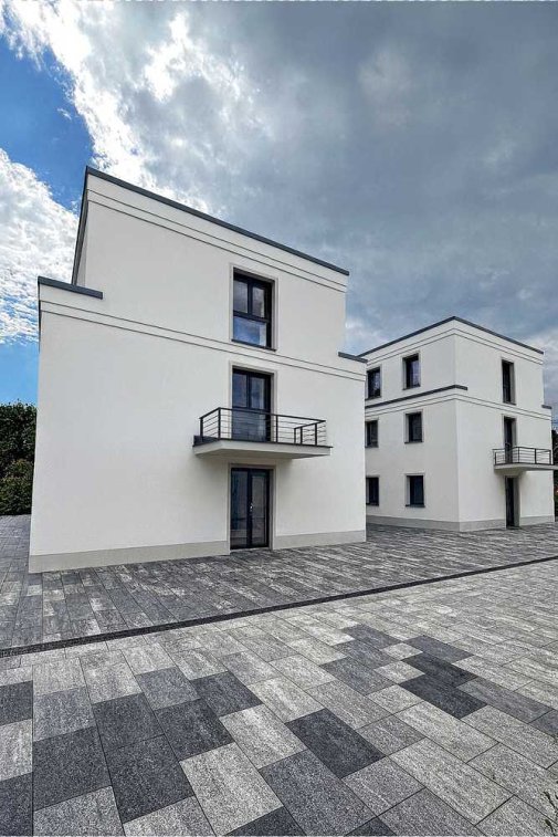 In einem harmonischen Zusammenspiel zweier Mehrfamilienhäuser entsteht ein architektonisches Duo, das modernen Wohnkomfort und