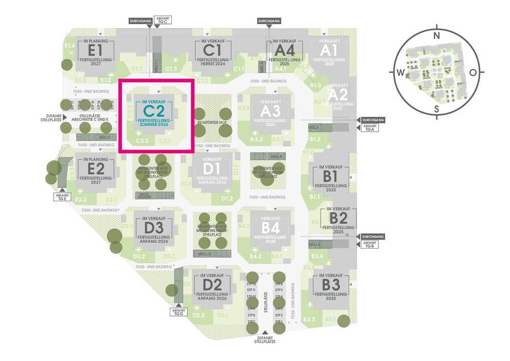 Auch die fünf eigenständigen Tiefgaragen bilden jeweils eine Untereigentümergemeinschaft.