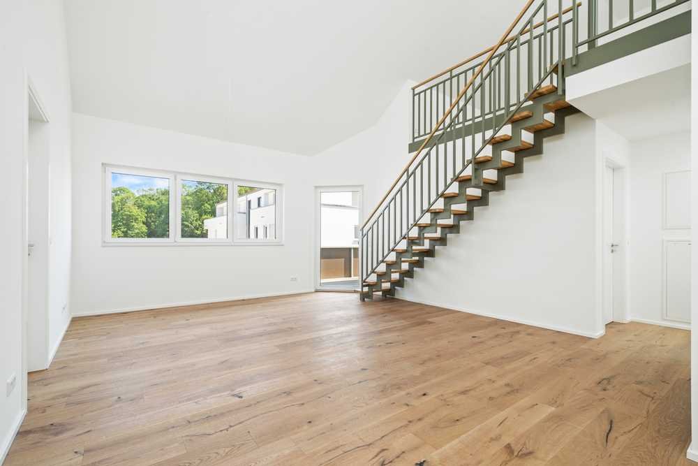 Diese großzügige 3,5-Zimmer-Maisonettewohnung mit ca. 94 m² Wohnfläche im 2. Obergeschoss überzeugt als Erstbezug – energieeffizient nach KfW-55-Standard und damit nachhaltig sowie besonders kostensparend. Auf zwei Ebenen bietet die Wohnung ein helles, offenes Wohn- und Esszimmer, das viel Platz für gesellige Stunden, entspannte Freizeitmomente oder gemeinsame Aktivitäten schafft. Ein Schlafzimmer sowie ein kleineres Zimmer, ideal nutzbar als Büro, Kinder- oder Gästezimmer, runden die praktische Raumaufteilung ab.