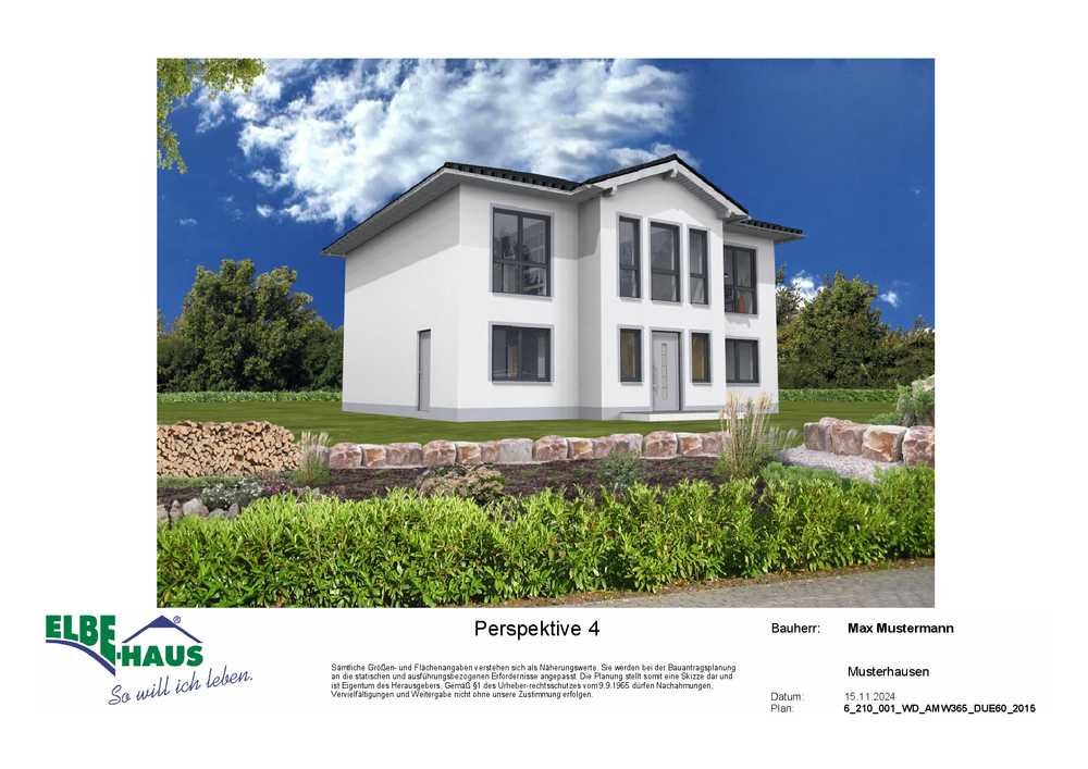 Dieses innovative Elbe-Haus® wird in massiver Bauweise von qualifiziertem Fachpersonal errichtet. Wir planen und projektieren nach Ihren Vorstellungen und Wünschen und somit ist wirklich jedes Haus einzigartig. Beachten Sie bitte, dass das abgebildete Haus lediglich ein Bebauungsbeispiel ist. Das Grundstück kann unter Berücksichtigung der örtlichen Bauvorschriften mit Ihrem Wunschhaus von Elbe-Haus® errichtet werden.