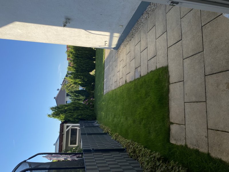 Der Blick in den kleinen gepflegten Garten bietet sich sowohl über die große Fensterfront im Wohnzimmer als auch von der geräumigen Terrasse an. Der Hof sowie der Garten wurden erst kürzlich neu gepflastert. Ein eigener Brunnen, eine Bewässerungsanlage erleichtern die Pflege. Eine Garage ist im Preis inklusive.