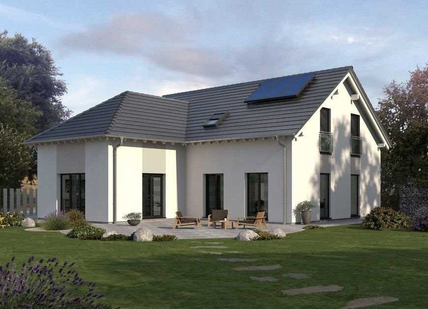 Im Haus sind zwei tolle Hausvarianten kombiniert: der Winkelbungalow und das Satteldach im Haupttrakt. Leben, spielen, arbeiten - und das alles unter einem Dach: In diesem Haus gar kein Problem. Ob als Einfamilienhaus oder als Haus mit Einliegerwohnung (Generationenhaus) - beides ist mit diesem Raumkonzept elegant lösbar. Wer sich im geschützten Winkel des Hauses einen hübschen Sitzplatz im Freien einrichtet, gewinnt zusätzlich noch ein Zimmer im Grünen.