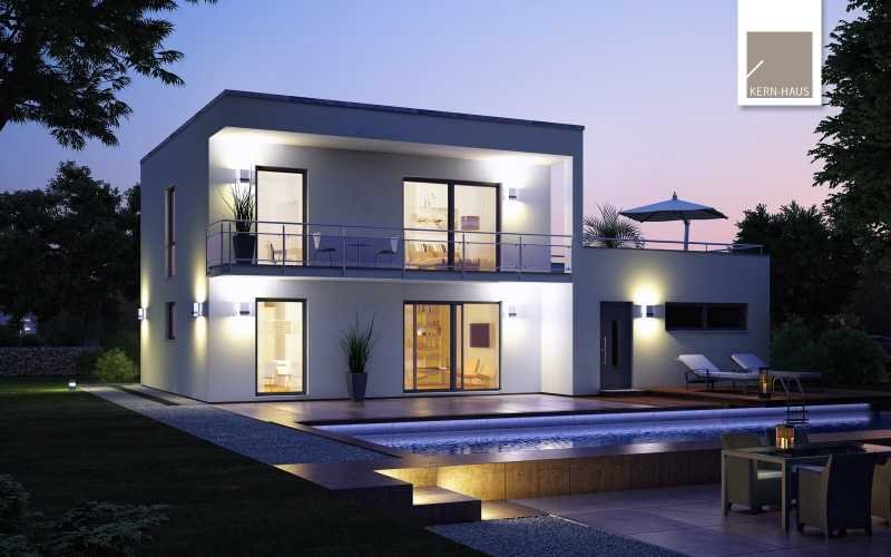 Edel und zeitlos präsentiert sich das Bauhaus Novum jedem, der Wert auf modernste Architektur legt. Der Design-Entwurf spricht eine klare und kompromisslose Formensprache. Schmale Fenster akzentuieren die Straßenseite. Gartenseitig schaffen die großen Fensterelemente einen fließenden Übergang von innen nach außen, von Wohnraum zu Terrasse. Das Flachdach wirkt schlicht auf der einen, und doch markant auf der anderen Seite des Hauses.