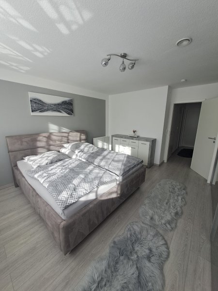 Im EG findet sich das große Wohnzimmer mit Essbereich. Zwei der Schlafzimmer finden sich im OG sowie ein weiteres im ausgebauten Dachgeschoss. Im Wohnzimmer als auch in den Schlafzimmern ist Kork verlegt.